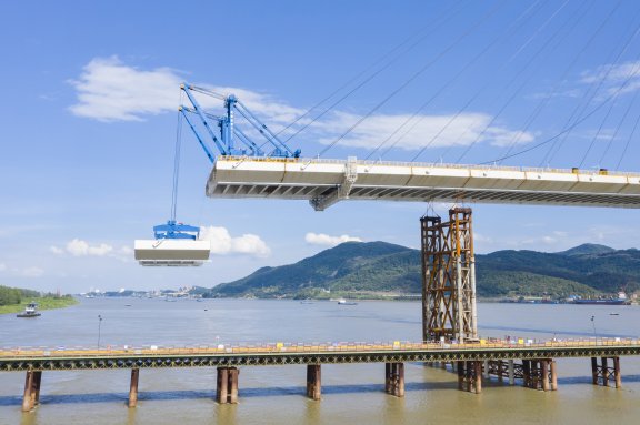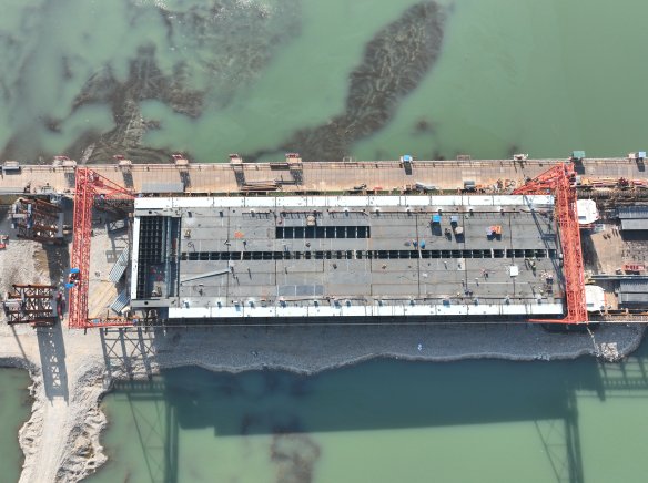 依托丹江口市水都二橋工程,提出了小曲率豎曲線長距離鋼箱梁分段多輪次頂推技術(shù),研發(fā)了大跨徑裝配式鋼導(dǎo)梁結(jié)構(gòu),研制了具有縱橫向糾偏功能的鋼箱梁頂推滑移設(shè)備,實現(xiàn)分區(qū)多點施工及鋼箱梁縱橫向位置的精準(zhǔn)調(diào)節(jié),保證了導(dǎo)梁的安裝質(zhì)量,提高了導(dǎo)梁的周轉(zhuǎn)效率及鋼箱梁的頂推滑移精度,降低了施工成本及施工風(fēng)險,節(jié)能減排效益突出。