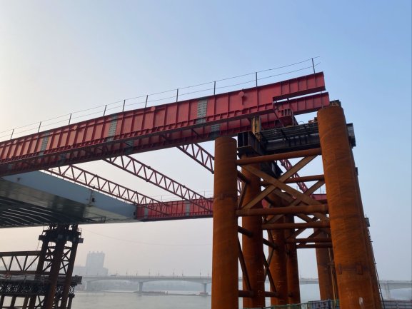 依托丹江口市水都二橋工程,研發(fā)了大噸位龍門吊與鋼梁拼裝平臺共用支架技術(shù)、大跨徑大斷面鋼箱梁拼裝線性變形控制技術(shù)及鋼箱梁節(jié)段精準(zhǔn)對接補強連接技術(shù),解決了龍門吊支架與鋼梁拼裝平臺支架交叉混亂、龍門吊軌道場地要求高的難題,提高了鋼箱梁節(jié)段對接安裝精度和連接強度,在有效工期內(nèi)完成了各項指標(biāo),獲得社會各方的高度好評。