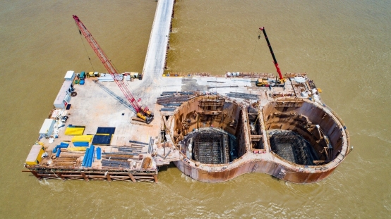 雙壁鋼圍堰是深水基礎(chǔ)施工常用的圍堰形式,具有剛度大、作業(yè)空間大等特點(diǎn),能夠適用更大的水深。圍堰的尺寸及高度應(yīng)根據(jù)基礎(chǔ)尺寸及放樣誤差、墩位處河床標(biāo)高、圍堰下沉深度和施工期間可能出現(xiàn)的最高水位高程以及浪高等因素確定,需進(jìn)行專門設(shè)計(jì),確保其強(qiáng)度、剛度及穩(wěn)定性滿足要求。