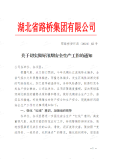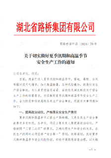 汛情就是命令,責(zé)任重于泰山。湖北路橋迅速發(fā)布《關(guān)于切實(shí)做好汛期安全生產(chǎn)工作的通知》《關(guān)于切實(shí)做好夏季汛期和高溫季節(jié)安全生產(chǎn)工作的通知》,安排部署加強(qiáng)汛期安全防范工作。各分子公司、各項(xiàng)目積極響應(yīng),按照“三管三必須”要求,抓好汛期安全風(fēng)險防控工作,嚴(yán)格落實(shí)安全生產(chǎn)責(zé)任,狠抓安全防范措施落實(shí),堅(jiān)決筑牢防汛“安全堤”。全體員工繃緊防汛這根弦,堅(jiān)決克服麻痹、僥幸心理,以“時時放心不下”的責(zé)任感,落細(xì)落實(shí)各項(xiàng)防汛措施,確保安全度汛。