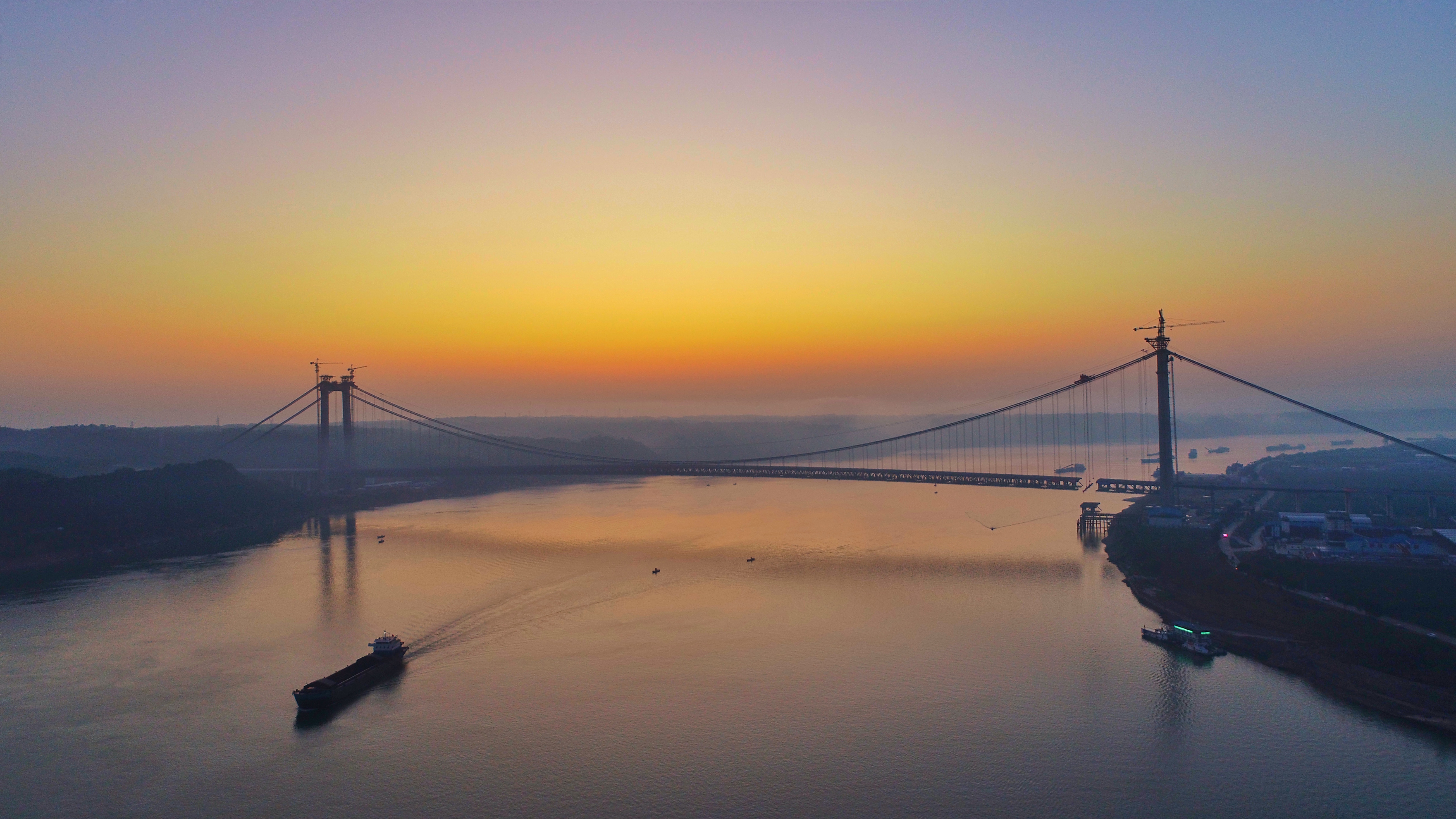 宜都長江大橋,又稱“宜都長江公路大橋”,是位于中國湖北省宜昌市的一座公路雙塔單跨鋼桁梁懸索橋,跨越長江,連接北岸枝江市白洋鎮(zhèn)和南岸宜都市陸城街道,是呼北高速公路宜昌至張家界段的控制性工程,也是湖北省“753”骨架公路網(wǎng)中規(guī)劃“縱6”的重要組成部分。大橋北接保康至宜昌高速公路,南連宜昌至張家界高速公路湖南段。大橋全長2,670.5米,按雙向六車道高速公路標(biāo)準(zhǔn)建設(shè),設(shè)計(jì)行車速度100公里/小時(shí),宜都長江大橋?yàn)橹骺?000m的單跨懸索橋,主纜邊跨跨度分別為276m和296.5m。全橋設(shè)兩根主纜,橫向間距為36m,吊索與主纜在一個(gè)豎直平面內(nèi)。大橋項(xiàng)目分兩個(gè)不同的標(biāo)段,項(xiàng)目估算總投資約37.33億元人民幣,計(jì)劃建設(shè)工期為48個(gè)月。湖北路橋集團(tuán)有限公司承建BY-2標(biāo)的建設(shè),2020年4月29月,大橋?qū)崿F(xiàn)全線貫通。