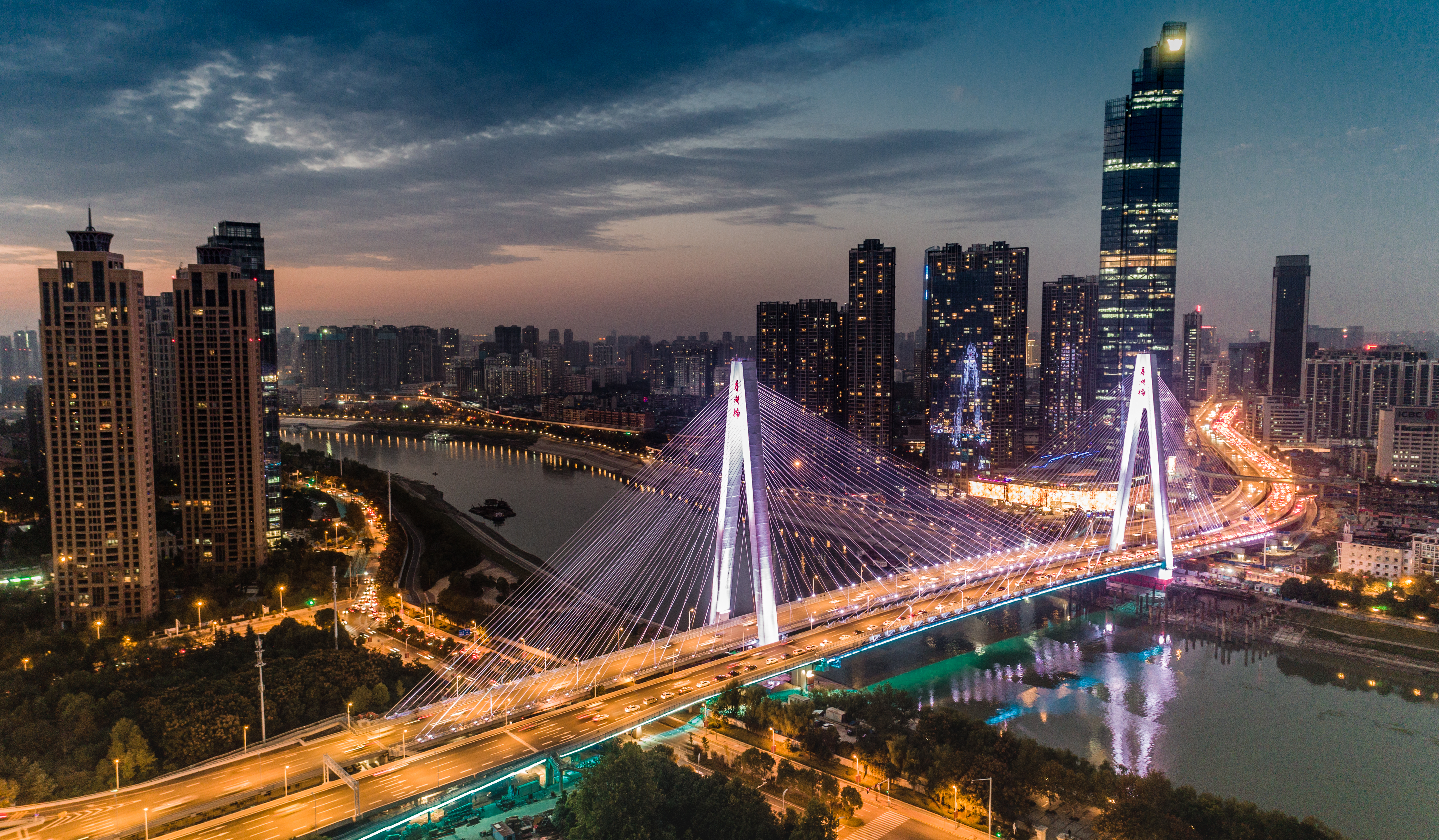 江漢四橋工程南起漢陽梅子山通道,北至漢口京漢大道,全長約1.86KM,主線按城市快速路標(biāo)準(zhǔn)建設(shè),設(shè)計(jì)時速60KM∕h、設(shè)雙向6車道,地面輔道按城市次干路標(biāo)準(zhǔn)建設(shè),設(shè)計(jì)時速40KM∕h、設(shè)雙向4-6車道。工程內(nèi)容主要包括:拓寬既有梅子山通道、新建江城大道下穿琴臺大道地下通道、在既有月湖橋下游新建一幅跨江大橋及兩岸引橋、新建琴臺大道上跨江城大道高架橋,以及相配套的人行天橋、通道、道路排水、交通、綠化、照明等工程。項(xiàng)目于2018年8月31日建成通車。