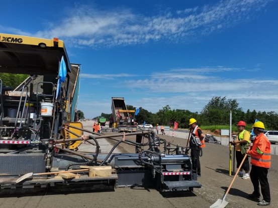 7月4日,湖北路橋赤壁長(zhǎng)江大橋東延段項(xiàng)目二期路面底基層、基層試驗(yàn)段順利完成攤鋪,標(biāo)志著赤壁東項(xiàng)目正式開(kāi)啟路面工程新篇章,為實(shí)現(xiàn)工程建設(shè)目標(biāo)奠定堅(jiān)實(shí)的基礎(chǔ)。
