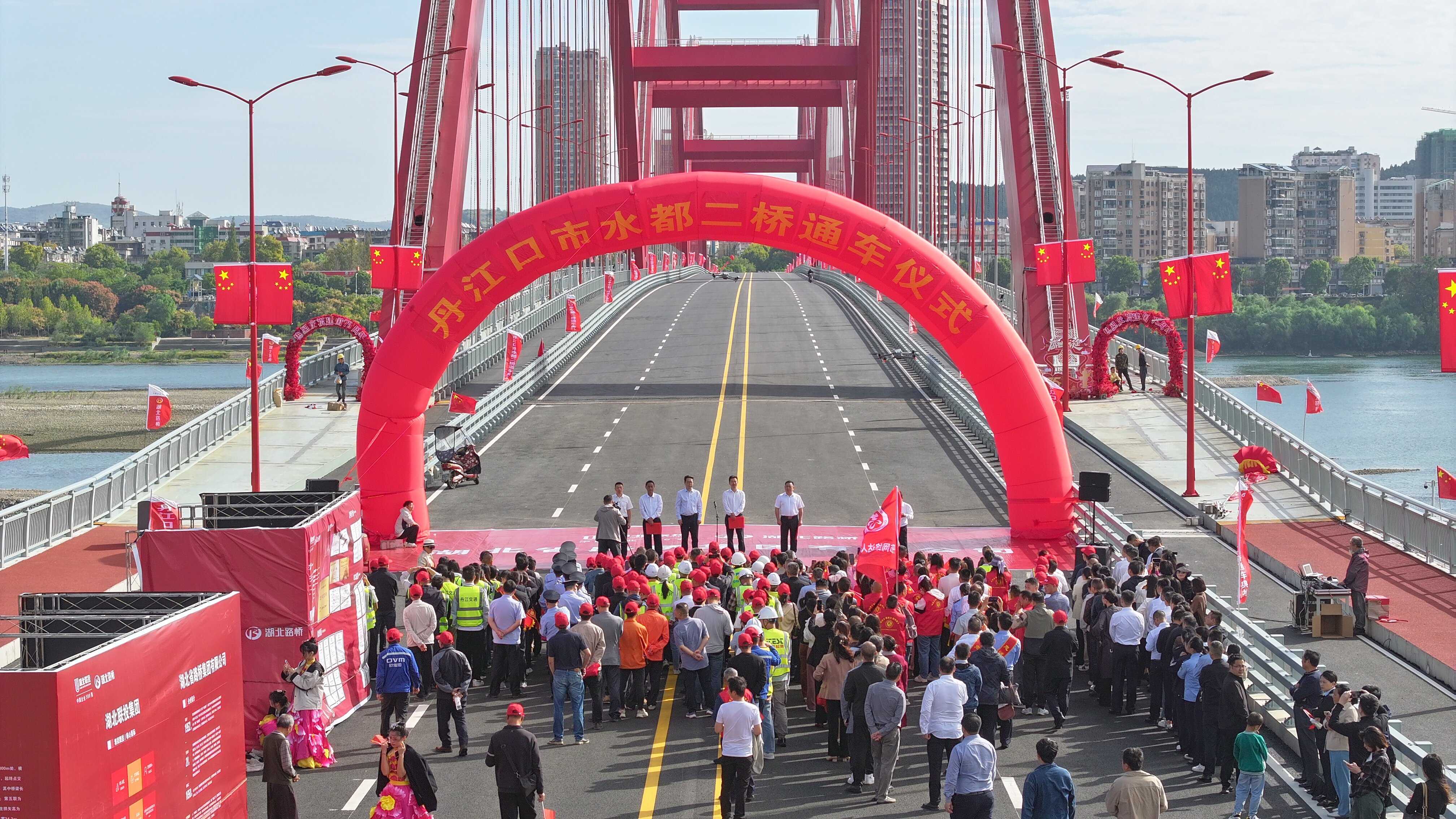 10月1日,由聯(lián)投湖北路橋承建的國內最大三跨連續(xù)鋼箱系桿拱橋——水都二橋正式通車。丹江口市委常委、常務副市長裴胡軍,市人大常委會副主任、市交通運輸局黨組書記陳鈞,副市長趙曉明,市政協(xié)副主席、黨組成員夏成樸出席通車儀式并講話,湖北路橋黨委副書記、執(zhí)行總經(jīng)理鄭杰出席通車儀式并致辭。